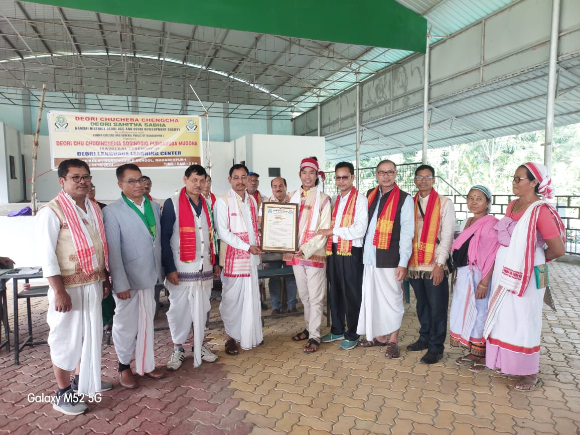 The Deori Language Learning Center also inaugurated at M/Pur I and M/Pur IV, Namsai district,AP on dated 17th Oct. 2024 by the President of DCC in presence of Chief Secretary DCC, Vice-President, Ex. Chief Secretary and Central Executive members of DCC, members of Deori Development Society(DDS), Namsai District Deori Chucheba Chengcha, indigenous Faith (AP), AAPDWA and other Local CBO's and the public of the village. The learning center's will be look after by a local management committee headed by Namsai District DCC and the Teaching Learning Materials(TLM) will be made accessible by DCC and the remuneration to the teacher will be borne by DDS. Also a Deori Language Learning center at the Anganwadi Center of Mahadevpur No II was formally declared inaugurated which will be managed personally by Jugal Khattiya Deori, Mahadevpur II. In the same meeting the famous U Tuber from Namsai, Sjt. Monu Bikomia was felicitated by President, Dr. Saranan Deori, on behalf of Deori Chucheba Chengcha (DCC), with a Deori Boche, a memento and a Deori Jacket.