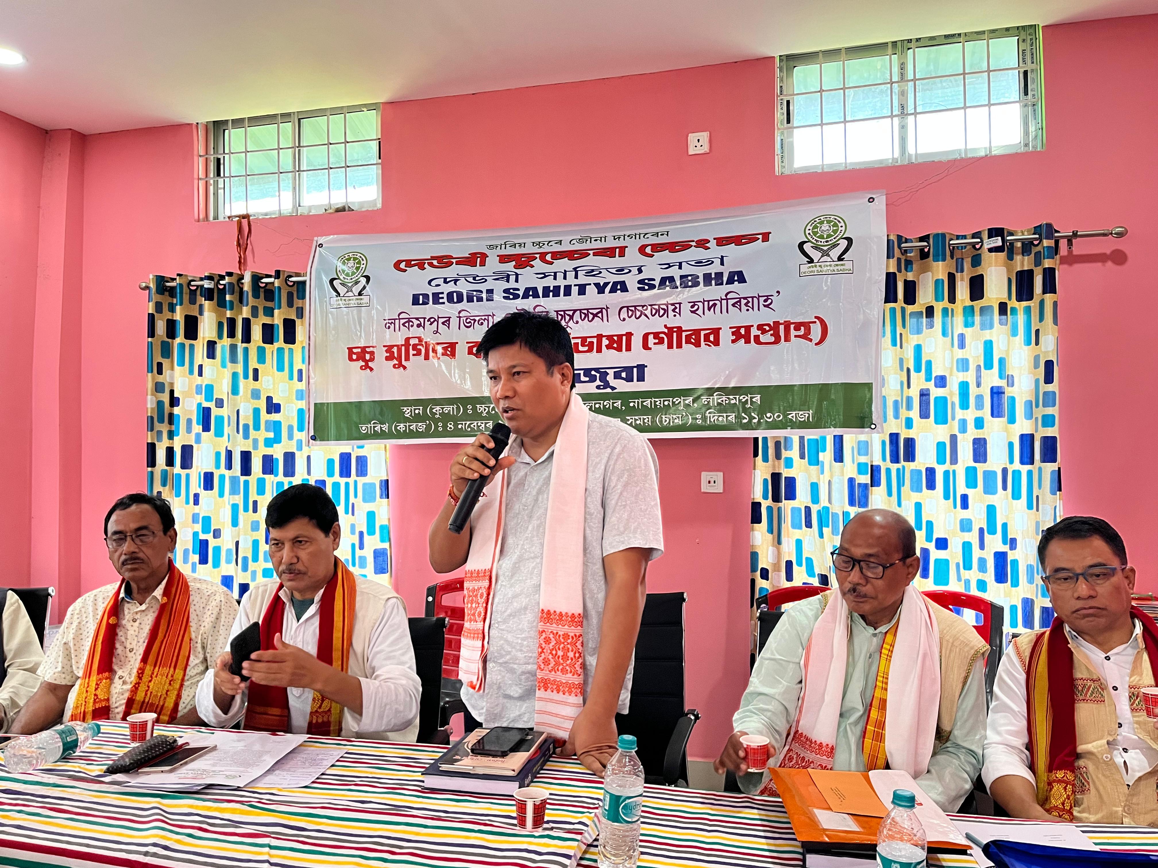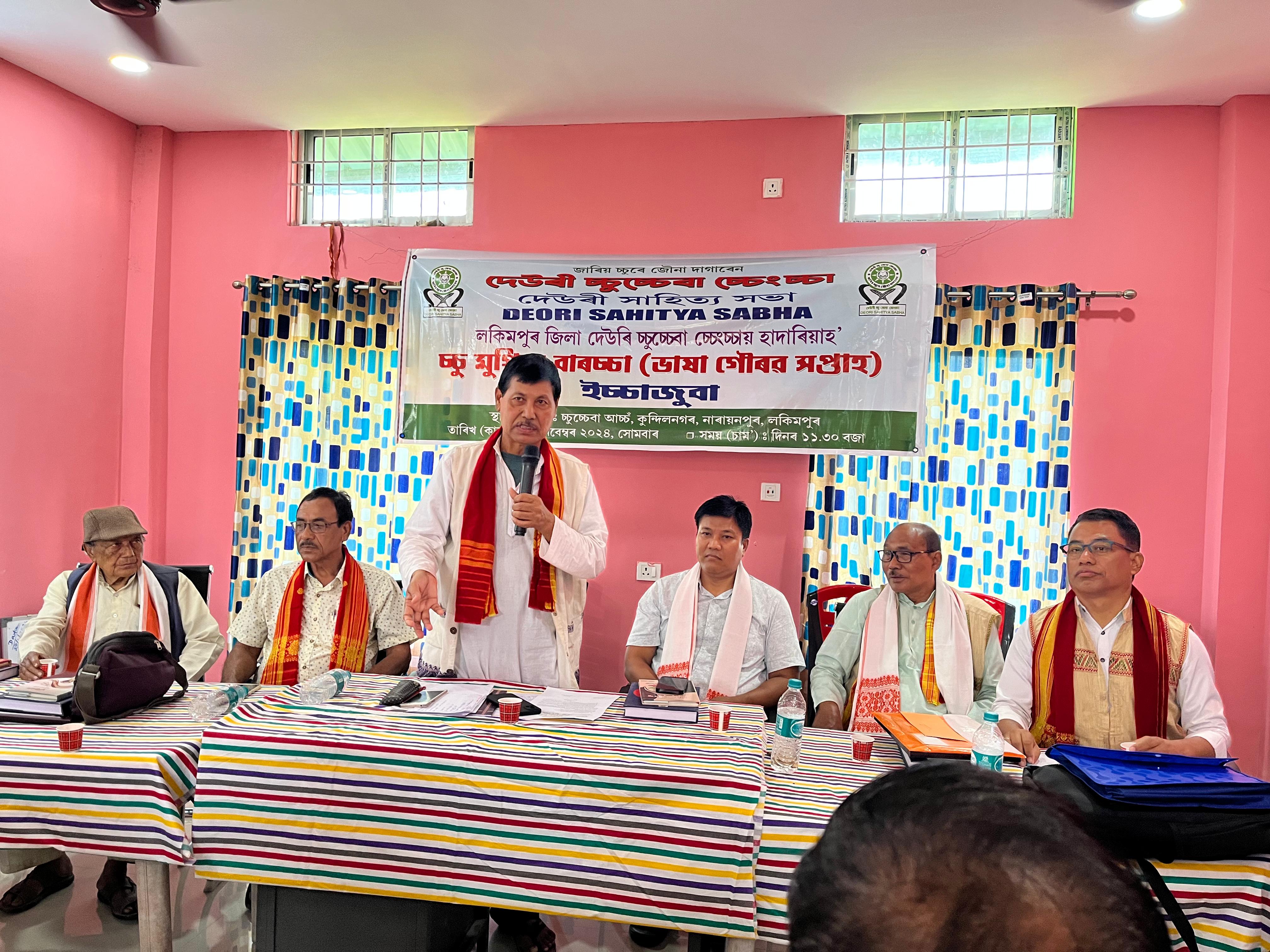 Deori Chucheba Chengcha (DCC), as per the schedule prepared by the Central DCC committee, celebrated the "Bhasha Gaurav Saptah" at Chucheba Achon, Narayanpur, District Lakhimpur, on 4th November 2024 along with an Echajuba attended by Central Committee, Lakhimpur District DCC, Kinapathar Branch DCC, Bhogpur Branch DCC and Lekak Branch DCC. 11 (Eleven) Nos of Scholars from within the Lakhimpur District were felicitated by the DCC with a Deori Boche, Bundle of Books and a memento as a part of the Bhasha Gaurav Saptah celebration. The President and Secretary of other Deori organisation and the Chief Executive Member of Deori Autonomous Council (DAC) also attended the function.