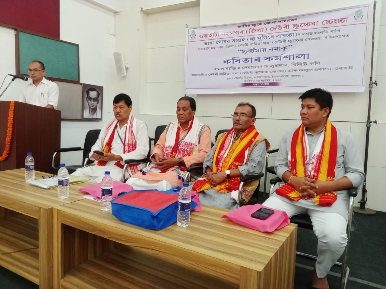 Deori Chucheba Chengcha (DCC), as per the schedule prepared by the Central DCC, celebrated the "Bhasha Gaurav Saptah" at Jyoti Chitraban,Guwahati, on 9th November 2024 along with a Workshop on Poem (চ্চুচ্চঁমায় নমাকু) in association with Banful Prakashan, Guwahati, chaired by Bharat Ch. Deori, President Guwahati Metro District DCC. The workshop on Poem was coordinated by Bipul Deuri, Sahitya Akademi award winner and the function was attended by Deboprasad Talukdar, poet, Dr.Saranan Deori, President, DCC. Bhoirab Deori, Chief Executive Member, Deori Autonomous Council (DAC), Central Executive Members & Karnadhar Committee Members of DCC, the members of the Guwahati Metro District DCC, members of Branch committee under Guwahati Metro District DCC and the local Public & dignitaries. The resolution for submitting a Thanks giving letter to the Prime Minister of India, Chief Minister of Assam, Education Minister of Assam and a demand for inclusion of Deori language in the 8th schedule of the Indian constitution were adopted unanimously. The Thanks giving letter was submitted through the District Commissioner, Guwahati Metro for onward submission.