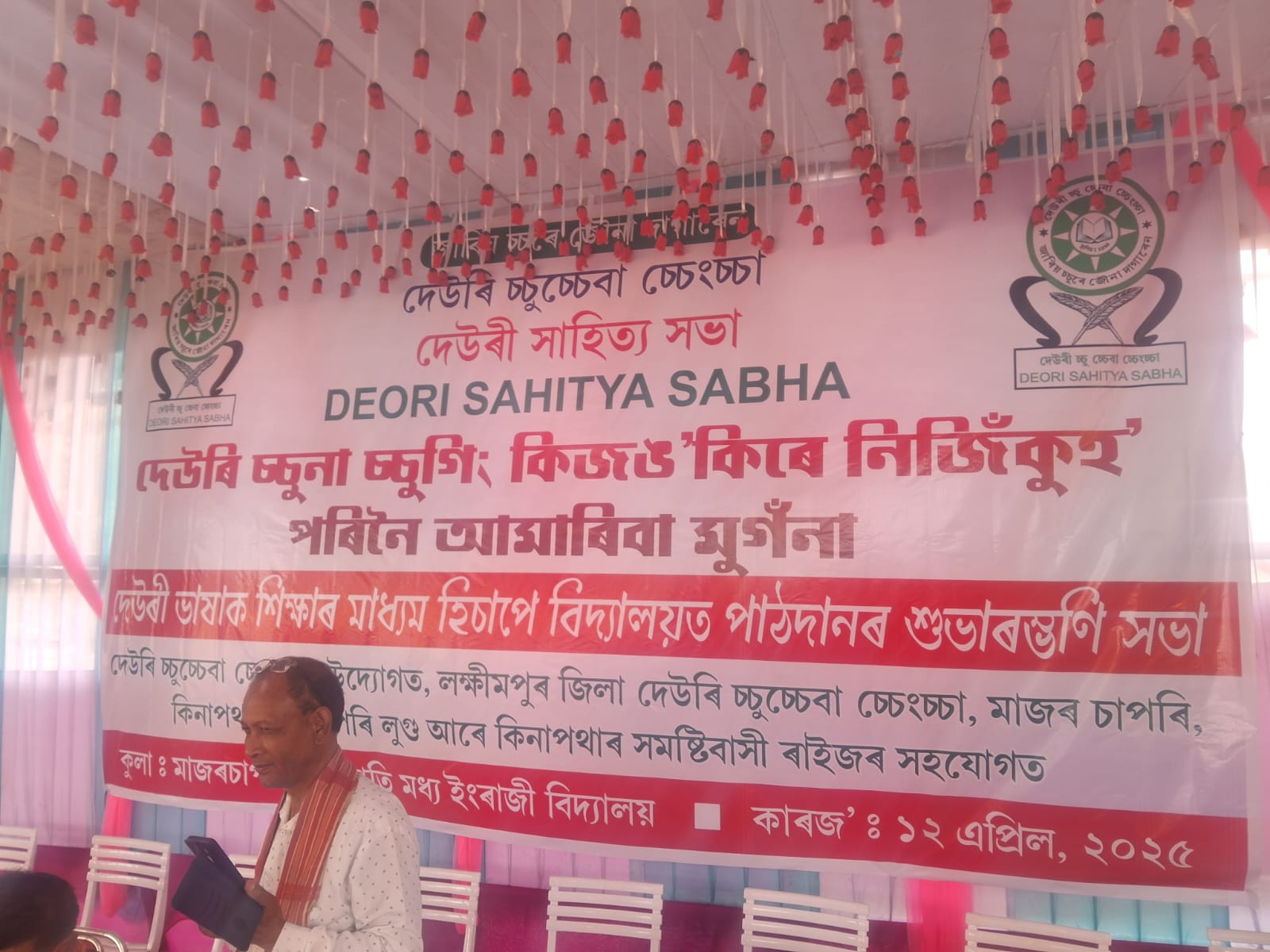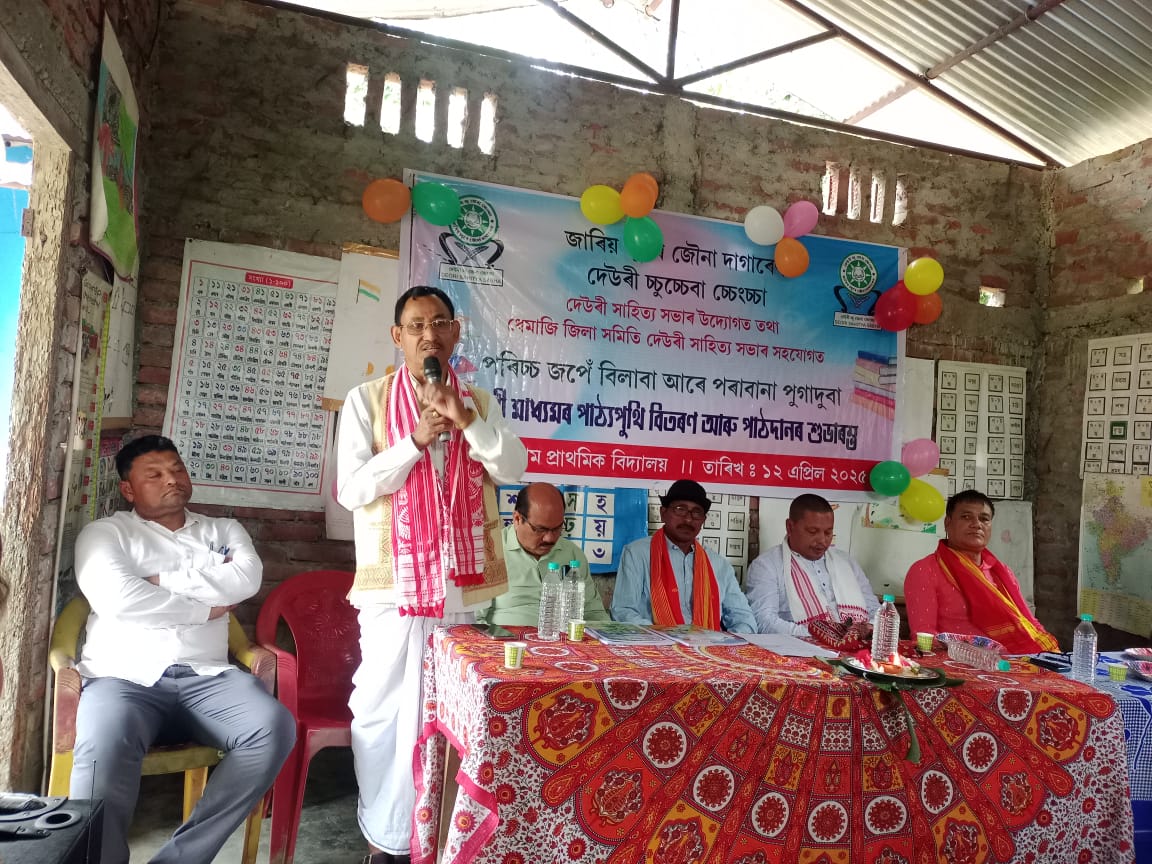The Text book for Ka shreni and Class I prepared by DCC in Collaboration with SCERT, Ghty, and published by Deori Autonomous Council, for the Deori Medium Lower Primary School were inaugurated centrally at Major Chapori Deori Gaon, Narayanpur, District Lakhimpur, Assam on 12th April 2025 in association with DAC. Simultaneously it was also inaugurated in all the 6(six) districts of Assam, by the District Committee Deori Chucheba Chengcha (DCC).